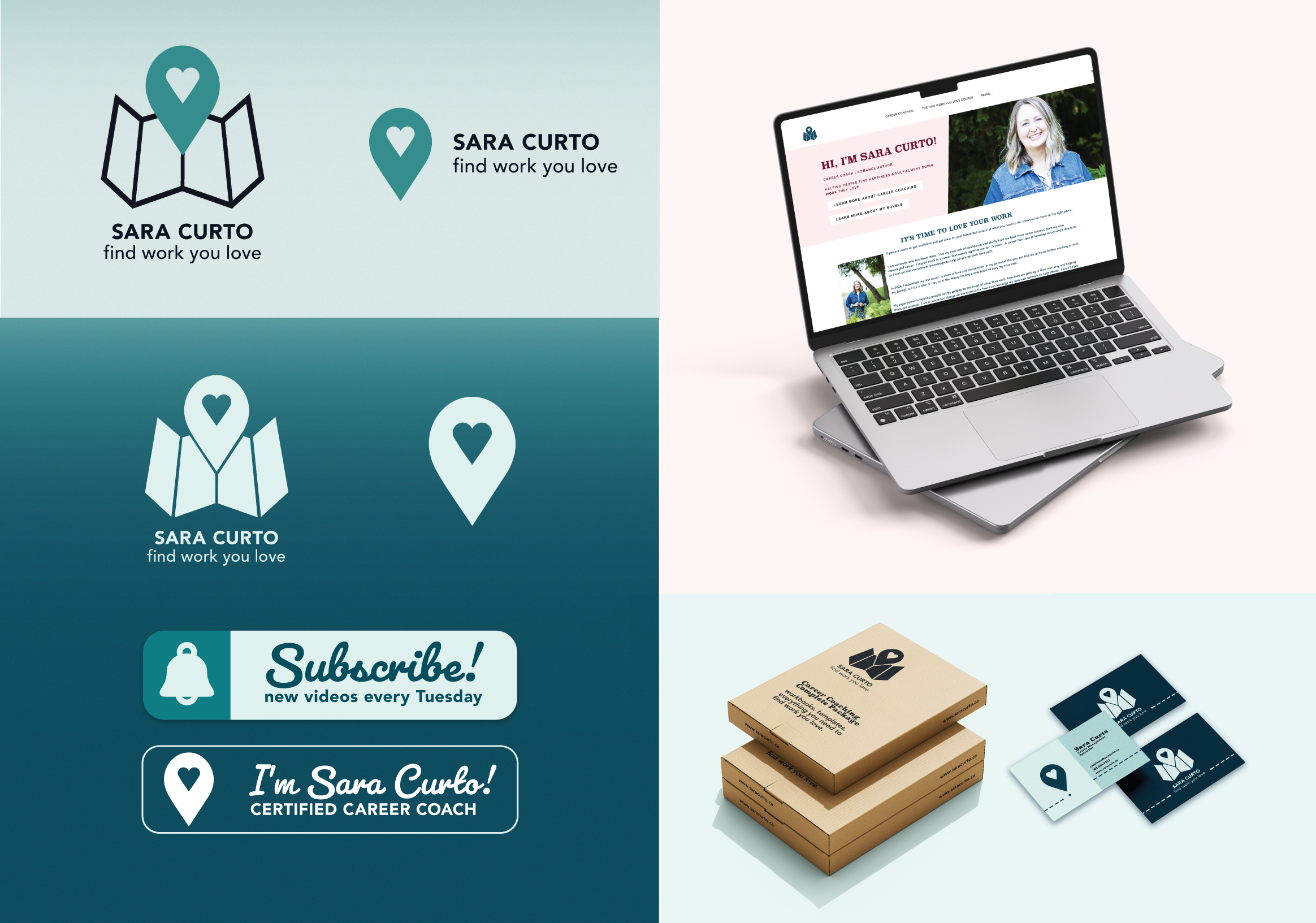 As Sara Curto Career Coaching expanded across social media, video, and client resources, the brand lacked a cohesive visual system. The existing logo was not scalable, the color palette offered limited contrast, and typography choices were inconsistent, making it difficult to maintain recognition, professionalism, and visual unity across platforms.